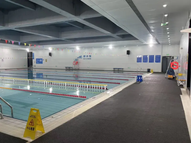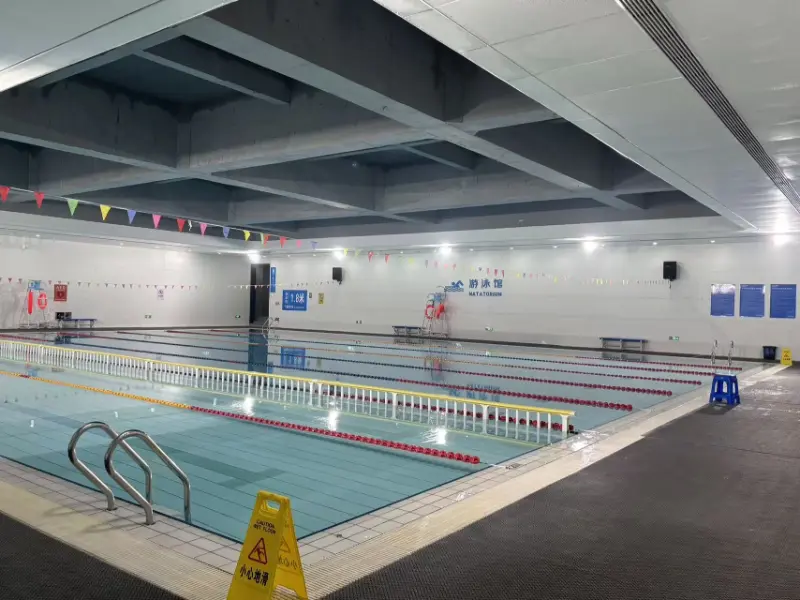 The exterior of the swimming pool features a metal fish-scale panel system, creating a scale-like light and shadow effect that changes with the curvature of the facade and the direction of sunlight, enhancing the "flow of water." The entire roof structure of the indoor pool area is exposed, with a truss spanning 48 meters, emphasizing the explicit expression of structural logic and reinforcing the spatial scale and sense of power of the sports venue. The venue houses two pools: a competition pool and a training pool. The competition pool is 50 meters long and 25 meters wide, with 8 lanes; the training pool is 50 meters long and 17 meters wide, with 6 lanes. Both pools are 2 meters deep.
