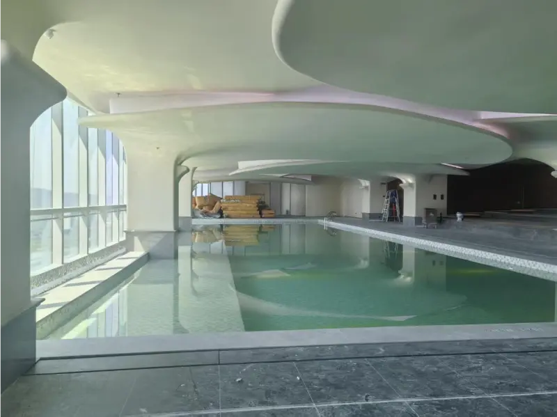 To ensure stable comfort and year-round usability, the facility is supported by advanced Heat Pump technology and efficient Air Conditioner systems. The integrated climate control solution helps maintain a stable indoor environment, ensuring optimal temperature for both air and water spaces in the swimming area.
